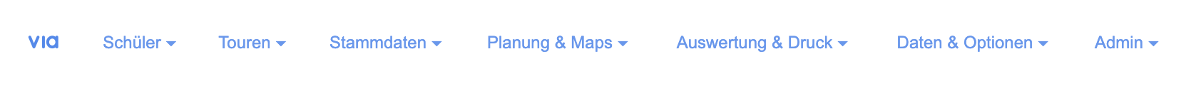 - Durch die Menüpunkte haben Sie die Möglichkeit sich durch VIA zu bewegen. Sie bilden die Hauptnavigation in VIA
