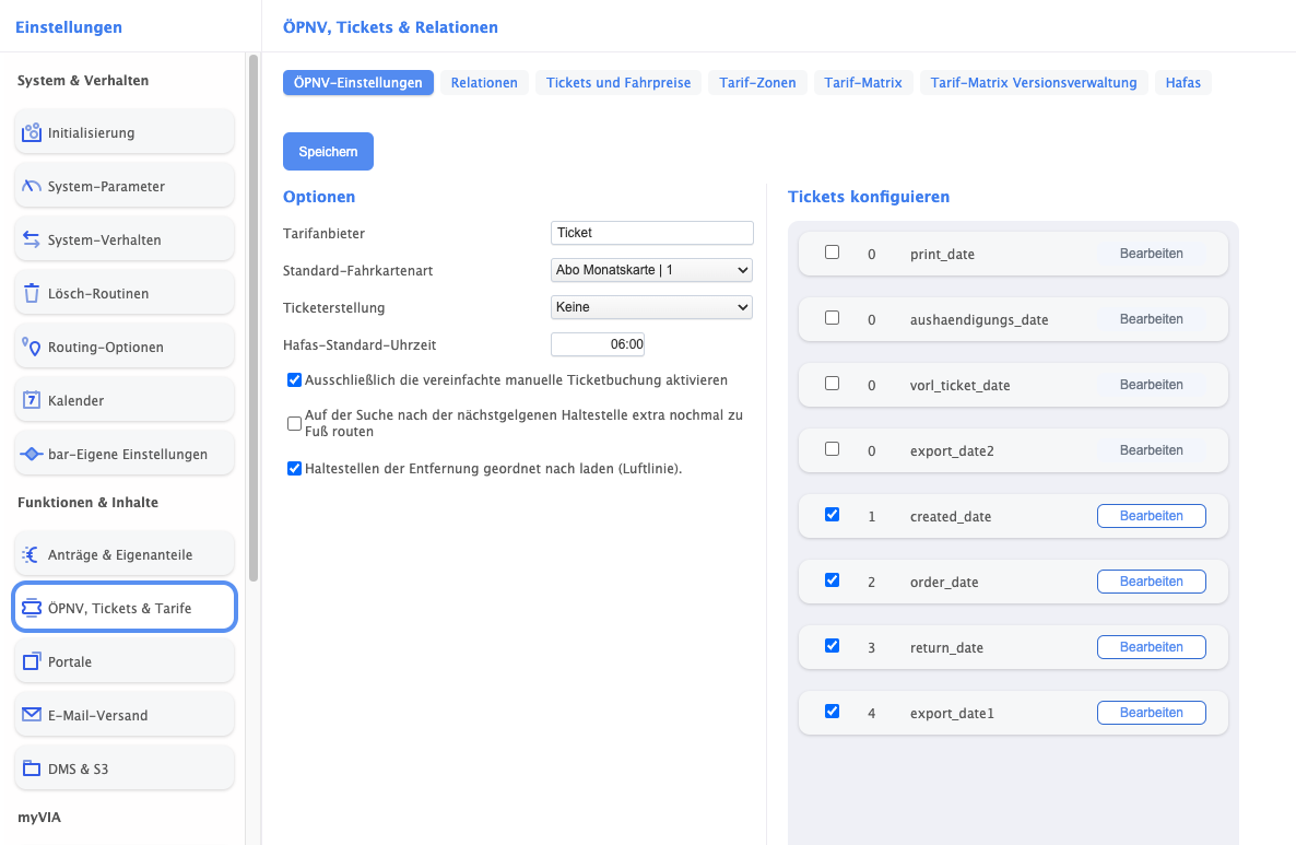 Hier wird der Ticket-Verlauf (die Häkchen) konfiguriert. Dieser wird ebenfalls während des On-Boardings konfiguriert.