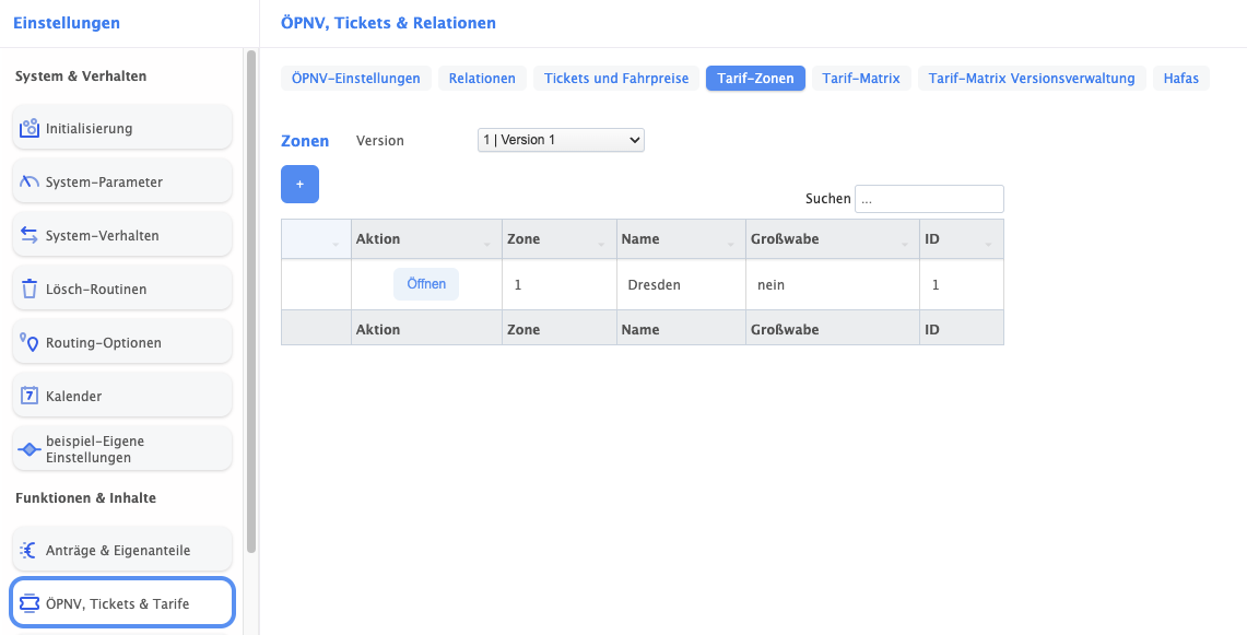Über das blaue + können auch im Nachhinein neue Tarif-Zonen hinzugefügt werden.