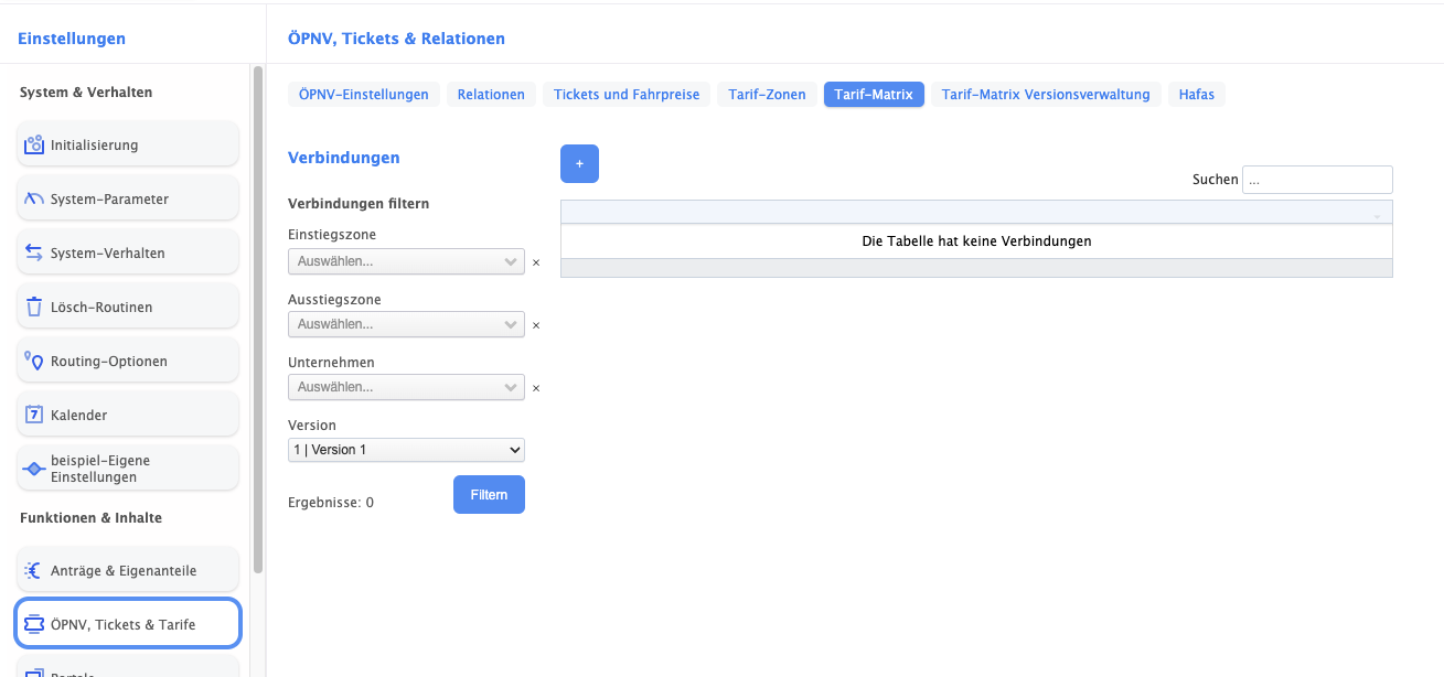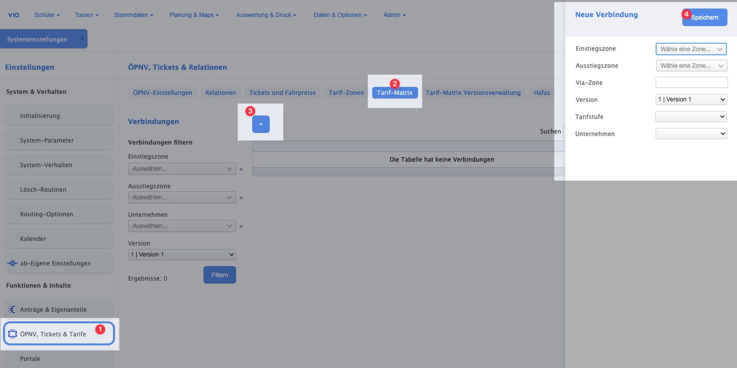 Um neue Verbindungen anzulegen oder bei bestehenden Verbindungen weitere Tarifstufen hinzuzufügen, gehen Sie wie folgt vor: