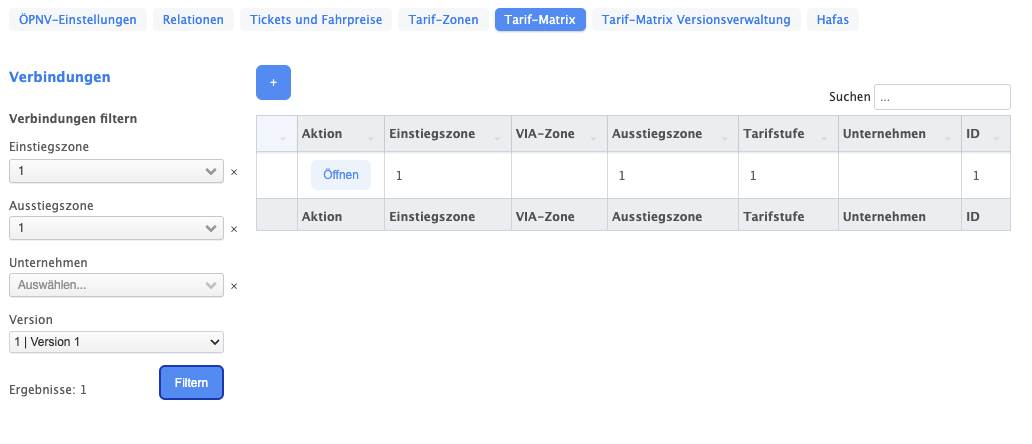 Hier können Sie sämtliche Verbindungen (Startzone → Zielzone) in VIA filtern. Da die Anzahl der Verbindungen sehr hoch sein kann, ist eine Filterung zwingend erforderlich. Sie haben folgende Filter-Möglichkeiten: