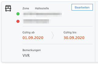 - Gültig ab -> Gültig bis: Steht für den Gültigkeitszeitraumes des Tickets, immer ein voller Monat