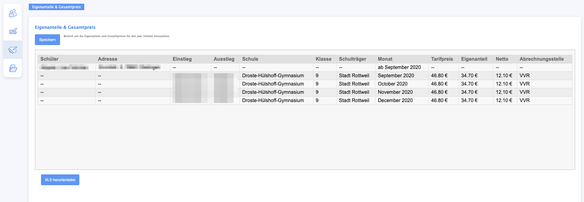 - Monat: Auflistung aller Monate in denen der Schüler ein Ticket hat